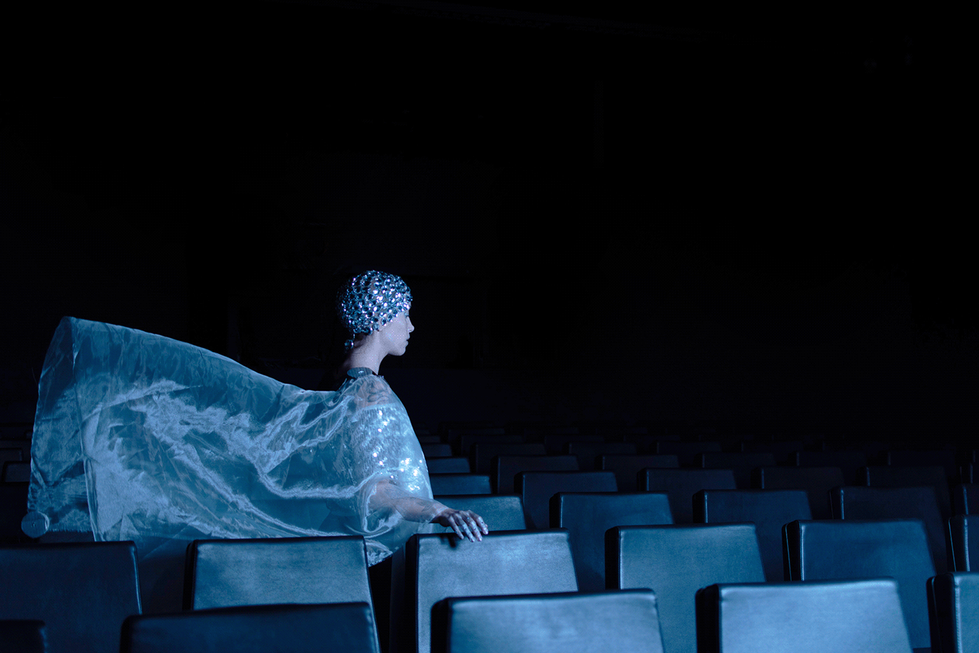 Fashion editorial inspired by the poem "The Moon in the Movie Theater" by Paulo Leminsky.
